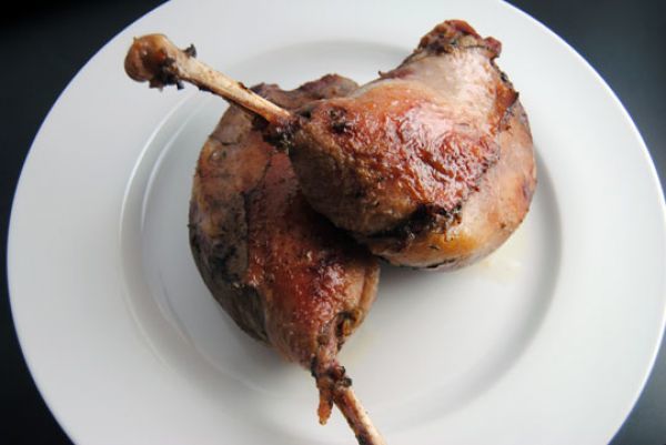 Pieczone w naszym piecu parowym nogi gęsi owsianej. Pieczone z gruszkami i śliwkami suszonymi. Duszone i pieczone w bulionie gęsim od Babci Jasi. Pakowane próżniowo razem z pieczonymi gruszkami i wypieczonym sosem, dodatkowo kruszeją. Do odgrzania w domu w piekarniku i gotowe do podania.